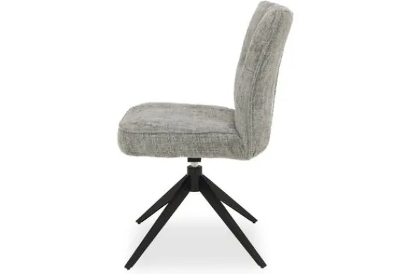 Eetkamerstoel Bardi NC 0405 van het merk Tower Living is een eigentijdse blikvanger die comfort en design naadloos met elkaar verbindt. De luxueuze, zilvergrijze stof heeft een verfijnde structuur die subtiel speelt met lichtval, terwijl het stoere metalen onderstel zorgt voor een modern accent. Dankzij het slimme 360 graden draaimechanisme biedt deze stoel niet alleen bewegingsvrijheid, maar ook een speelse functionaliteit aan de eettafel.