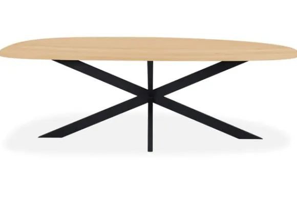 Eettafel Arcadia van het merk Simble is een houten, kiezel vormige eettafel die beschikbaar is in verschillende afmetingen en kleuren. De Arcadia eettafel heeft een modern taps bladtype, wat de eettafel een elegante look geeft. Bij alle eettafels van Simble kun je zelf ook de tafelpoten kiezen zodat je de tafel naar jouw smaak kunt aanpassen! Deze tafel wordt standaard geleverd met een zwart metalen kruispoot, onder “stel jouw tafel samen” is het mogelijk om voor een andere tafelpoot te kiezen.