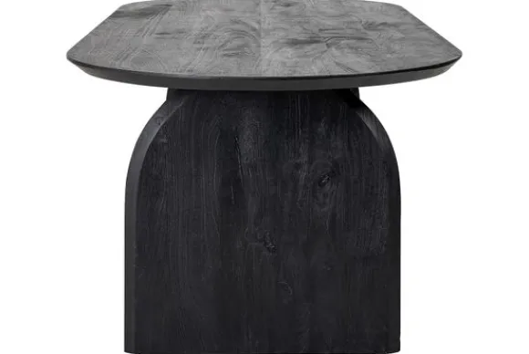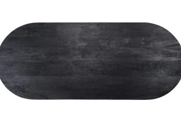 Eettafel Hudson van het merk Richmond Interiors is gemaakt van mangohout. Mangohout kun je herkennen aan de vele kleurschakeringen en ongelijkheden in het oppervlakte van het hout, waardoor geen enkel meubelstuk hetzelfde is. De eettafel heeft een zwarte afwerking, hierdoor heeft de tafel een tijdloze en stoere uitstraling. Mangohout is een duurzame houtsoort. Door de ovale vorm van het blad worden de rechte vormen en lijnen in ons interieur doorbroken, hierdoor creëer je een zachte, vriendelijke uitstraling met een speels effect. De eettafel is verkrijgbaar in verschillende afmetingen.