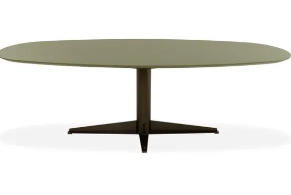 Eettafel La Paz van het merk Every Table BV is een elegante verschijning met een uitgesproken hedendaagse allure. Het stomp ovale tafelblad, vervaardigd uit duurzaam HPL, straalt dankzij zijn matte oppervlak een ingetogen luxe uit. De zachte, verfijnde rondingen van het blad creëren een vloeiende beweging in de ruimte, terwijl de minimalistische middenpoot met stervormige basis zorgt voor een moderne balans tussen stabiliteit en luchtigheid.