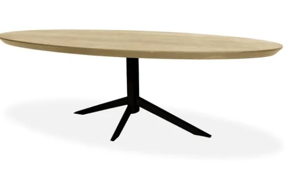 Eettafel Melia van het merk Premium Interior heeft een ovale vorm en een opgedikt blad van 3+3 cm dik. De ovale vorm zorgt voor een prettige zit en een ruimtelijk effect aan tafel.