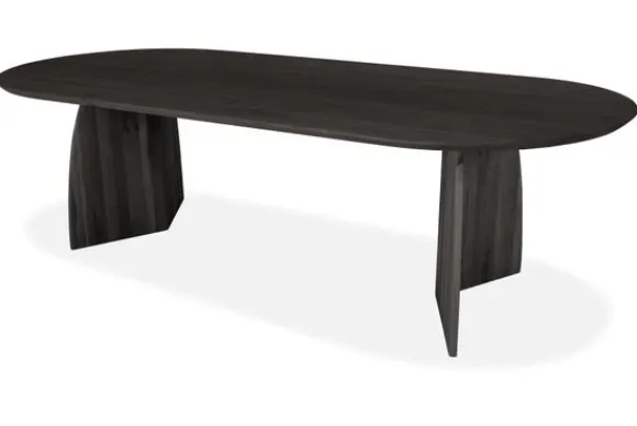 Eettafel Torvic van het merk Premium Interior is uitgevoerd met een plat ovaal blad en staat op twee stevige poten. De combinatie van het blad en het onderstel zorgt voor een stabiele en praktische tafelopstelling.