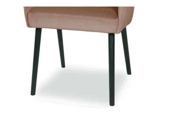 Deze eetkamerstoel wordt standaard uitgevoerd met houten poten in de kleur zwart.