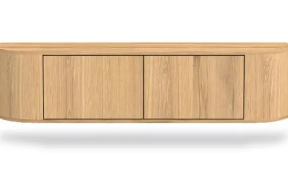 Het tv meubel is voorzien van twee deuren met een push-to-open systeem. Hier berg je apparatuur en accessoires eenvoudig uit het zicht op en oogt het geheel rustig aan de wand.