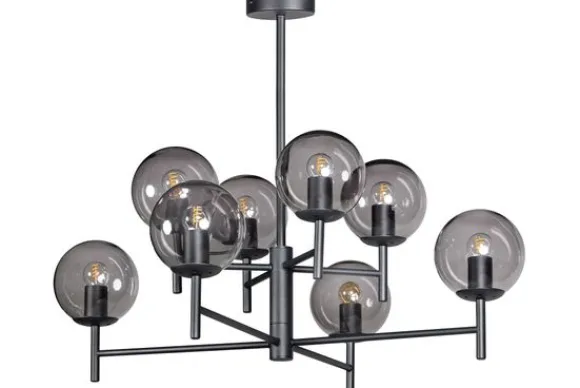 De lamp wordt exclusief lichtbron geleverd. Doordat de lichtbron niet meegeleverd is, kun je zelf bepalen hoeveel licht je wilt en in welke kleur. Deze lamp is uitgevoerd met 8 E27 fittingen.