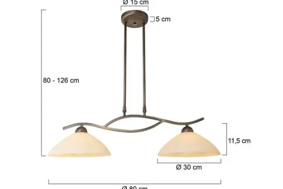 Hanglamp Anthea 4325BR van het merk Steinhauer is een moderne hanglamp met twee lichtpunten. De bronskleurige afwerking en de vierkante buizen geven de lamp een strak uiterlijk. De lamp heeft twee E27 fittingen die geschikt zijn voor LED, spaarlampen en gloeilampen tot maximaal 60 watt. De lichtbronnen worden niet meegeleverd. Tijdens de montage is de hanglamp in hoogte verstelbaar.