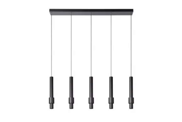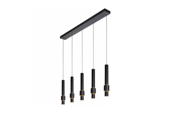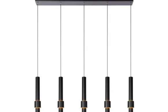 Hanglamp Margary van het merk Lucide brengt een luxueuze eyecatcher binnen in je interieur. Ze past perfect boven de eettafel van een hedendaags interieur, maar het uitgekiende materialenpallet en de kleurkeuzes blenden evengoed in een eerder landelijke stijl. De aluminium bevestigingsplaat vormt de basis voor de 5 slanke pendels. Aan elk van hen hangt een licht conische aluminium cilinder met daarin de lichtpunten verwerkt. In het meervoud, inderdaad. Want naast een downlighter helemaal onderin de cilinder plooit een tweede geïntegreerde ledlamp zich rond de elegante koker. Op zijn beurt omringd door een tweede cilinder. Het uitgekiende design van deze vormen en hun verhouding creëren een mysterieuze gloed. Het resultaat is een instant eyecatcher met sterallures.