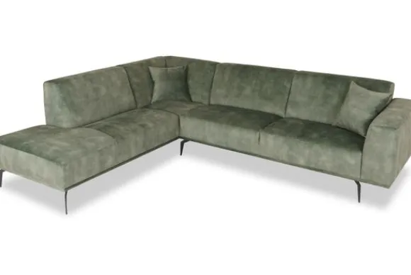 Hoekbank Iris van het merk Design Italia is beschikbaar in alle kleuren en in verschillende materiaalsoorten zoals stof, velvet en rundleder. Je kunt kiezen uit diverse afmetingen. Ook kun je kiezen voor een gladde rugleuning of intrekkiningen in de rug en voor een geknepen naad of een dichte naad. Dit is een strakke bank door de rechte, vaste kussens. De bank staat op metalen knikpoten waardoor het een luchtige uitstraling heeft.