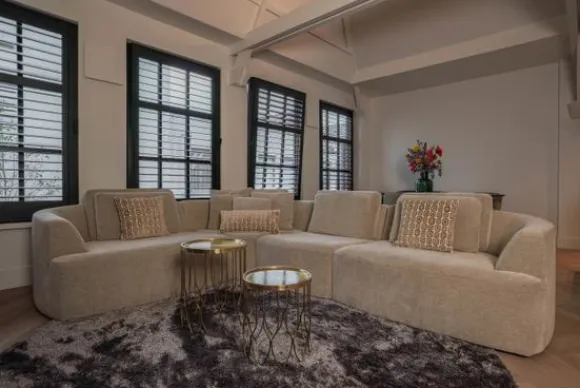 Hoekbank Marjolein van het merk Fris Lifestyle is verkrijgbaar in alle kleuren en verschillende materiaalsoorten zoals stof, velvet en microvezel. Daarnaast is deze bank verkrijgbaar in verschillende afmetingen en opstellingen. De bank heeft een knusse uitstraling dankzij de ronde vormen en dubbele rugkussens. De armleuning loopt naadloos door in de rugleuning, dit geeft een moderne look. De zitting is gevuld met koudschuim wat voor een stevige zit zorgt. De rugkussens hebben een vulling van koudschuim met een bovenlaag van siliconenvezels, hierdoor zijn deze wat zachter.