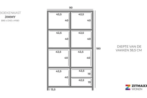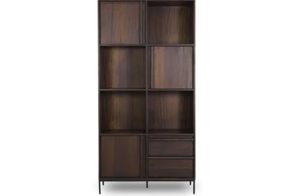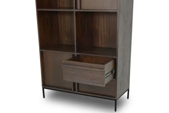 Het kabinet heeft vier open vakken, drie deuren en twee lades. Deze indeling biedt diverse mogelijkheden om spullen overzichtelijk op te bergen of te tonen. Het kabinet maakt deel uit van een .