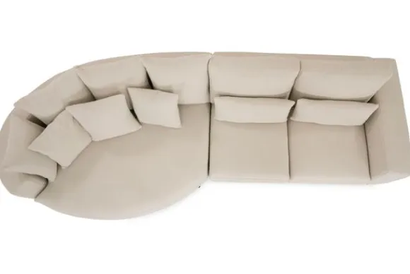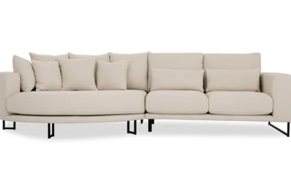Loungebank Dordoni II van het merk Be Inspired is verkrijgbaar in alle kleuren en in verschillende materiaalsoorten zoals ribstof, teddy en velvet. Je kunt kiezen uit diverse afmetingen. De Dordoni II bank wordt standaard uitgevoerd met alle sierkussens en lendekussens die ook op de foto te zien zijn. De rugkussens daar achter zijn lekker hoog, deze combinatie zorgt voor een goede ondersteuning van de rug. Alle rugkussens zitten los en zijn omkeerbaar, de zitkussens zitten vast met klittenband. Het unieke aan de Dordoni II is het ronde loungegedeelte. Je kunt hier lekker wegkruipen tussen alle sierkussens. Deze bank oogt ruimtelijk door de hoge metalen sledepoten.