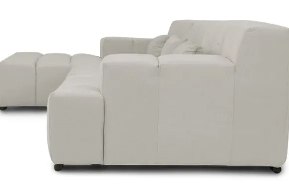 Dit bankstel is samen te stellen in vele afmetingen en verschillende opstellingen, of kies uit een van de standaard opstellingen. Ook kan je kiezen uit mat zwarte of chroom pootjes en zijn er bijpassende hoofdsteunen, sier- en lendekussens en poefjes beschikbaar. Deze worden uitgevoerd in dezelfde stof als de bank.