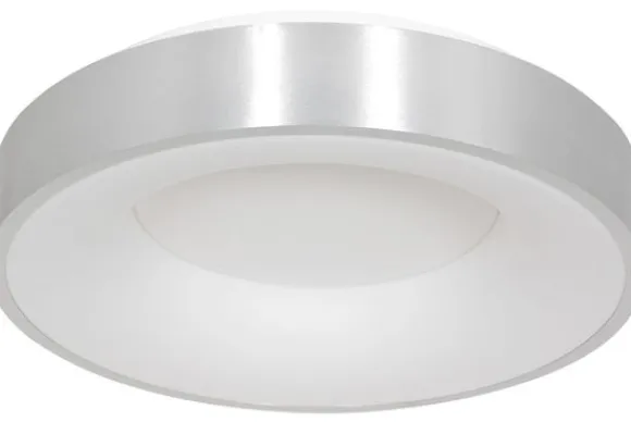 Plafondlamp Ringlede 2563ZI van het merk Steinhauer is een moderne zilverkleurige lamp en vervaardigd uit metaal en kunststof. De lamp is voorzien van een vervangbare LED-module van 30 Watt. De kleurtemperatuur van de LED ring is 2700 Kelvin en heeft een lichtopbrengst van 3600 Lumen. De diameter van de plafondlamp is 48 centimeter en heeft een hoogte van 9 centimeter. De lamp is dimbaar middels een externe dimmer, welke niet meegeleverd is.