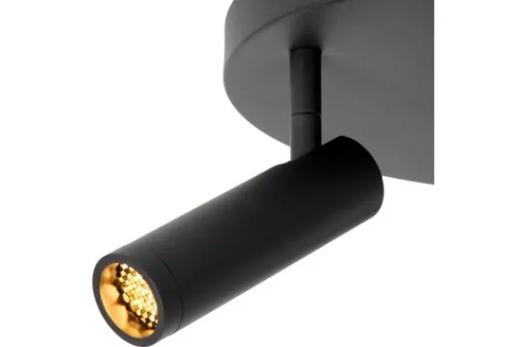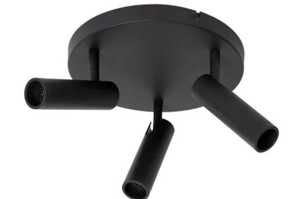 Plafondlamp Grado van het merk Lucide is een krachtige drie-spotlamp met een verfijnde, cilindervormige vormgeving en een matzwarte, moderne uitstraling. De ronde plafondplaat zorgt voor een harmonieuze balans tussen functionaliteit en design.