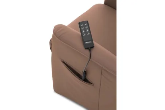 Fauteuil Florian wordt standaard geleverd met een manueel relaxsysteem. Het handmatige relaxsysteem heeft een hendel tussen de zitting en armleuning, wanneer je deze naar achter duwt kun je met jouw rug de rugleuning naar achteren duwen. De voetensteun schuif je uit door jezelf in de stoel naar achteren te duwen. Er kan ook gekozen worden voor een elektrisch systeem, er wordt dan een afstandsbediening mee geleverd waarmee je eenvoudig de stoel kunt bedienen. Met het twee motorige relaxsysteem kun je alle delen van de stoel appart bedienen, er kan dan ook gekozen worden om de hoofdsteun elektrisch bedienbaar te maken. Bij het één en drie motorige systeem kan er een sta-op hulp ingebouwd worden. Hiermee gaat de stoel mee naar boven en kiept licht voorover, waardoor je er weer makkelijk uit kunt komen!Â