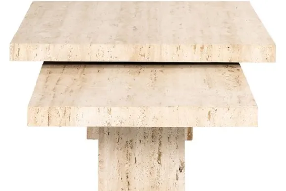 Salontafelset La Cantera 211707 van het merk Richmond Interiors is een set van twee tafeltjes. Het salontafels zijn gemaakt van traverin. Travertin is een mooi en duurzaam natuurlijk sedimentair gesteente, gemaakt van calciumcarbonaat, dat vaak gebruikt wordt voor tafelbladen. Het heeft een unieke uitstraling met variaties in kleur en textuur. Hoewel het redelijk stevig is, kan travertin gemakkelijk krassen oplossen van scherpe voorwerpen of zware impact. Voor een lange levensduur van het blad adviseren wij ook altijd bescherming te gebruiken.