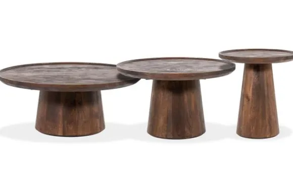 Salontafelset Ron van het merk Eleonora is is compleet gemaakt van mangohout en heeft een gecoate afwerking. Mangohout kun je herkennen aan de vele kleurschakeringen en ongelijkheden in het oppervlakte van het hout, waardoor geen enkel meubelstuk hetzelfde is. Mangohout is een duurzame houtsoort. Deze set bestaat uit drie tafels van de volgende afmetingen: B80 x D80 x H32 cm, B66 x D66 x H39 cm en B46 x D46 x H49 cm.