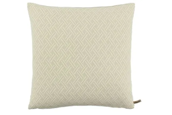 Sierkussen Cannas Off White van het merk Claudi is een elegant vierkant kussen van 45 x 45 cm, inclusief binnenkussen, dat subtiele luxe en milieubewust design samenbrengt.