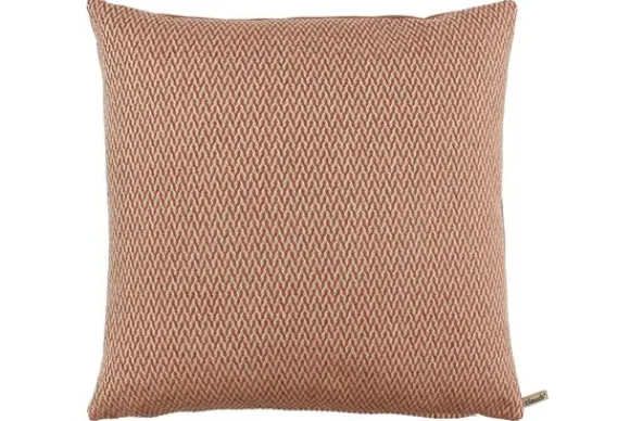 Het subtiele zigzagmotief in roestoranje en zandkleurige tinten geeft het oppervlak een grafisch karakter zonder druk te zijn. Het kussen ademt rust en ritme, als een elegante vertaling van ambachtelijk textiel in een modern jasje. De fijne structuur voelt aangenaam aan en voegt visuele diepte toe aan iedere zithoek.