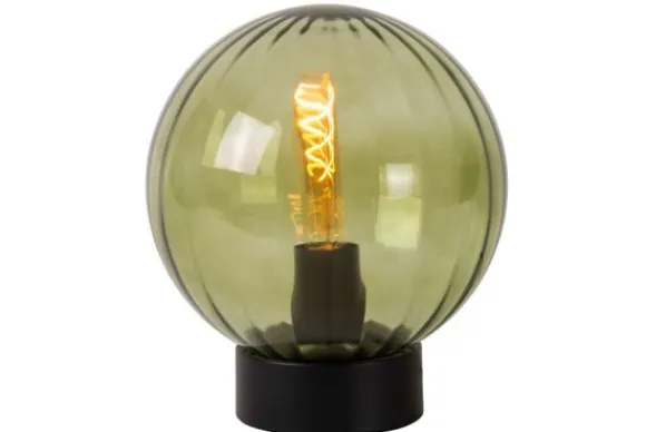 Tafellamp Monsaraz 45593/01/33 van het merk Lucide is een stijlvolle lamp met een glazen bol in een zachte groentint. De subtiele ribbelstructuur in het glas zorgt voor een speels lichteffect en een warme gloed die perfect past in een eigentijds interieur.