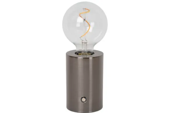 Tafellamp Vivo van het merk Lucide is een eigentijdse blikvanger in compact formaat. De cilindervormige voet in geborsteld zwart chroom straalt een warme luxe uit, terwijl de grote, zichtbare filamentlamp zorgt voor een speelse en industriële touch. Een perfect huwelijk tussen minimalisme en elegantie. Daarnaast is de lamp oplaadbaar en dus ook zonder snoer te gebruiken.