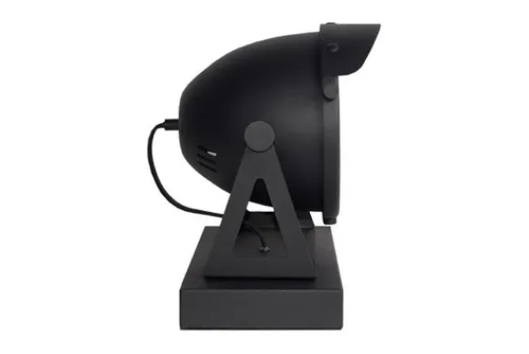 Tafellamp Cap, uitgevoerd in de kleur zwart heeft een grote ronde kap, geïnspireerd op de ouderwetse fietskoplamp. De kap is voorzien van een glasplaat, wat de lamp een extra luxe uitstraling geeft en daarnaast zorgt voor de perfecte lichtspreiding. Het driehoekige, metalen frame aan beide zijden, verbindt de kap met de robuuste, rechthoekige voetplaat. Het frame zorgt er tevens voor dat Cap van links naar rechts en van boven naar beneden te bewegen is, om het licht op de juiste plaats te laten schijnen.