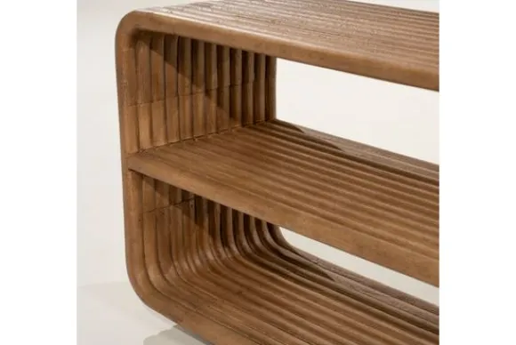 Tv-meubel Rigato 250453 van het merk By-Boo is een stijlvolle blikvanger gemaakt van warm mangohout. Het open design met afgeronde hoeken en ribbelstructuur geeft het meubel een luchtige uitstraling.