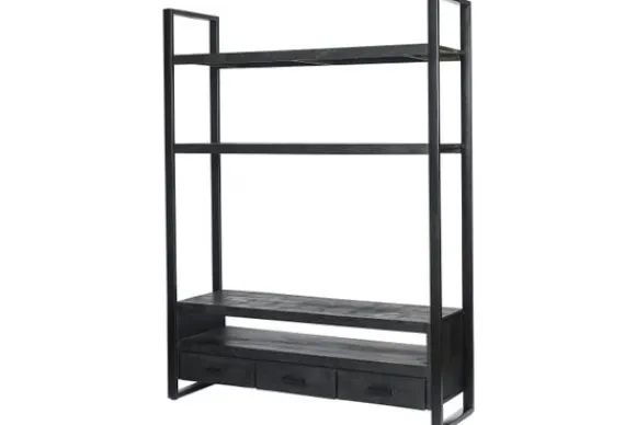 Onderin het tv meubel bevinden zich drie lades voor het opbergen van diverse spullen. Daarboven zijn open vakken in verschillende afmetingen geplaatst, geschikt voor media apparatuur of decoratie.