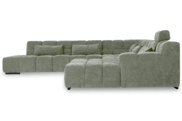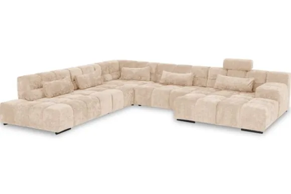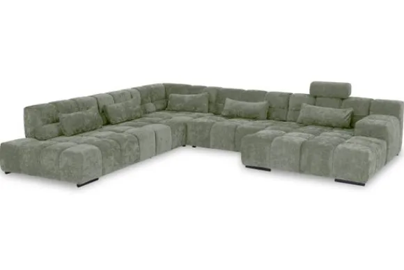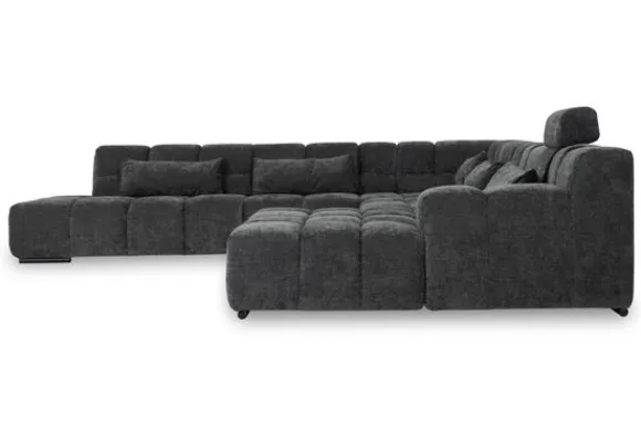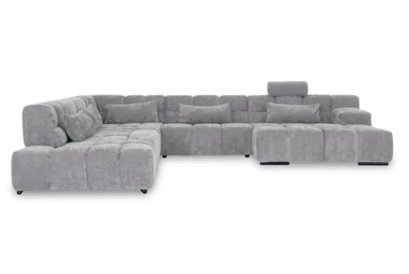 Dit bankstel is samen te stellen in vele afmetingen en verschillende opstellingen, of kies uit een van de standaard opstellingen. Ook kan je kiezen uit mat zwarte of chroom pootjes en zijn er bijpassende hoofdsteunen, sier- en lendekussens en poefjes beschikbaar. Deze worden uitgevoerd in dezelfde stof als de bank.