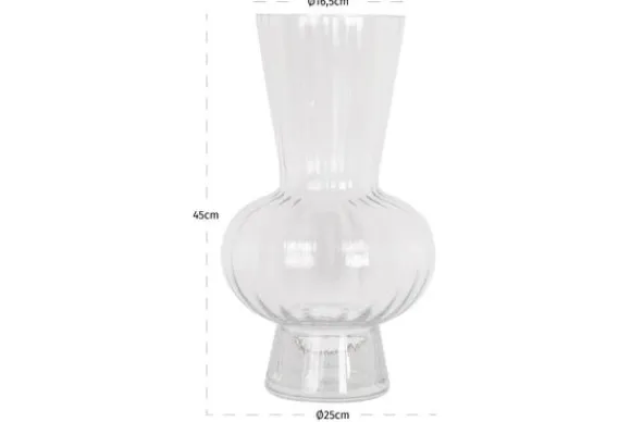 Vaas Kyan 213507 van het merk Richmond Interiors is een elegant en tijdloos decorstuk dat direct in het oog springt. Het transparante glas met fijne ribbels zorgt voor een speels spel van licht en reflectie. De bolle vorm loopt stijlvol over in een smalle hals, wat de vaas een verfijnd en modern karakter geeft.
