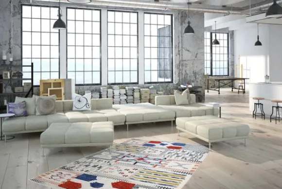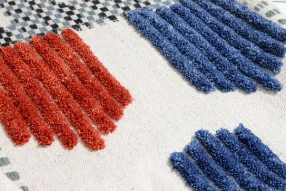 Vloerkleed Empire 110 Ivoor Multi van het merk Divendo is verkrijgbaar in verschillende afmetingen. Dit prachtige wollen kleed krijgt zijn bijzondere uitstraling door geometrische vormen en verschillende kleuren. Ondanks de verscheidenheid aan kleuren is het vlakpolige vloerkleed met enkele ongeverfde delen vrij subtiel, waardoor het ideaal te combineren is met vele inrichtingsstijlen. De dessinsamenstelling van het wollen kleed bestaat uit de basiskleuren blauw, rood en geel, maar ook zwart, grijs en wit.