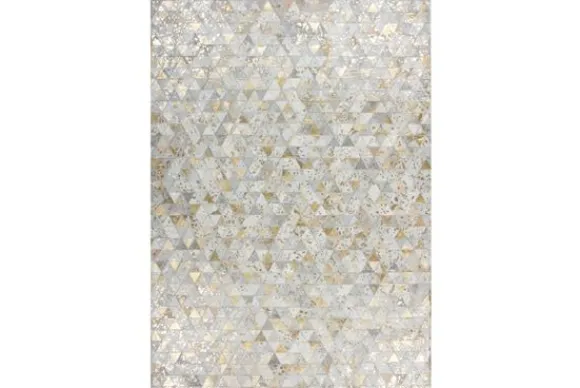 Vloerkleed Rocket 410 Ivoor Goud van het merk Divendo is verkrijgbaar in verschillende afmetingen, designs en kleuren. De basis van dit 100% leren vloerkleed in patchwork-design wordt gevormd door verschillende nuances van een kleur. De bedrukte, metallic folie is het bijzondere hoogtepunt van het tapijt, zet accenten en laat het kleed glanzen. Elk vloerkleed van de Rocket serie is uniek door natuurlijke variaties in maat, kleur, patroon en structuur. Deze unieke stukken worden afgerond door de foliedecoratie in goud of zilver. Van het natuurlijke leer wordt een hoogwaardig tapijt met de hand gemaakt, dat naast zijn duurzaamheid en robuustheid ook glanst omdat het lichtecht en gemakkelijk schoon te maken is. Zacht katoen completeert de onderkant van het lederen vloerkleed en ondersteunt de warmte-isolatie en geluidsisolatie. Zelfs kamers met vloerverwarming zijn geen probleem voor dit kleed.