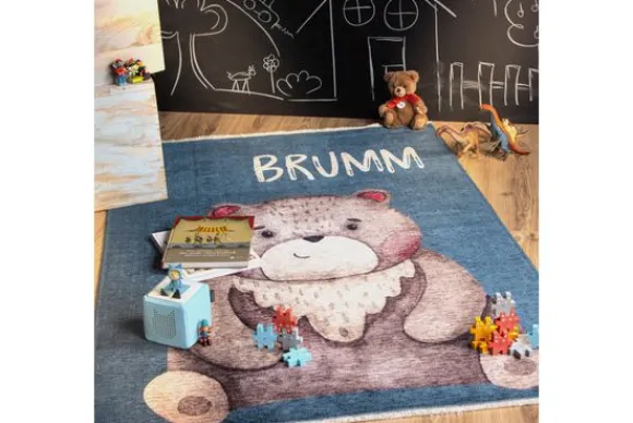 Vloerkleed Greta 613 Brumm van het merk Viviendo is perfect voor in de kinderkamer. Dit vloerkleed is gemaakt van 70% gerecycled katoen en 30% polyester. Gerecycled katoen wordt door diverse onderzoeken onderschreven als de meest duurzame vorm van katoen. Het heeft een hoge duurzaamheid en langdurige kleurintensiteit. Dankzij het gebruik van polyester is dit een stevig, niet pluizend en gemakkelijk te onderhouden vloerkleed. Dit vloerkleed is extra zacht en voorzien van een print met een beer.