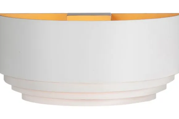 Wandlamp Elena Wit van het merk Highlight heeft een luxe uitstraling vanwege de gouden binnenkant. De lamp geeft licht af dat naar beneden en naar boven schijnt. De wandlamp heeft vier horizontale bogen, waarvan de breedste boog een diameter heeft van 30 cm. Deze wandlamp heeft een stekker. Elena is verkrijgbaar in drie kleuren.