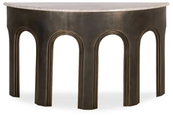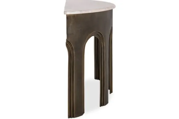 De onderzijde is gemaakt van metaal in een bronzen kleur en is vormgegeven met open bogen. Wandtafel Sanchis is perfect voor tegen de muur met decoratie verlichting of accessoires.