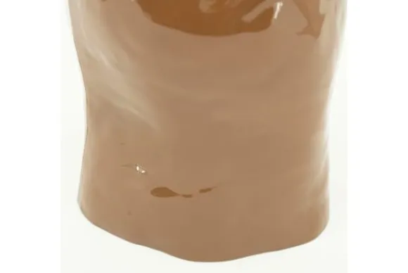 De bruine kleur en de subtiel golvende textuur geven de vaas een speels en ambachtelijk karakter. De glanzende afwerking reflecteert het licht op een subtiele manier, wat een extra dimensie aan het ontwerp toevoegt.