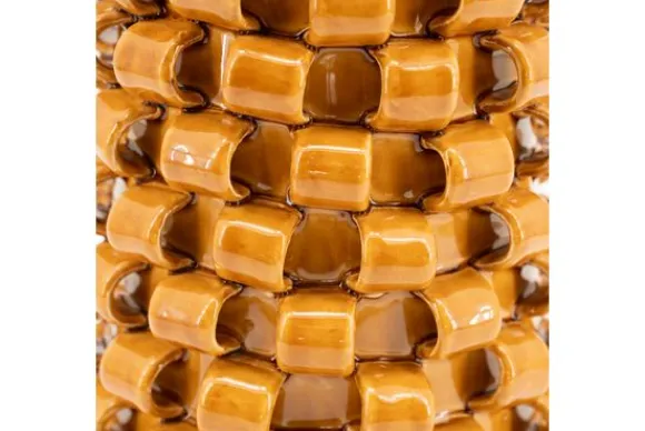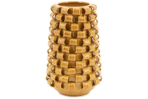 Vaas Loopa Mosterd 250307 van het merk By-Boo is een opvallend woonaccessoire met een speels karakter. De vaas is vervaardigd uit aardewerk en afgewerkt met een glanzende geglazuurde laag die het oppervlak een verfijnde glans en luxe uitstraling geeft.