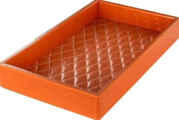 Dienblad Jelissa 212103 van het merk Richmond Interiors heeft een strakke uitstraling die enerzijds ook klassiek oogt door de geruite binnenkant. Het dienblad is gemaakt van MDF, glas en rexine. Rexine is een vorm van kunstleder dat tegenwoordig nog gebruikt wordt voor het binden van lederen boeken en heeft de look van echt leer. Rexine is slijtvast en een antislipmateriaal. Het luxe dienblad is zowel praktisch als decoratief te gebruiken.