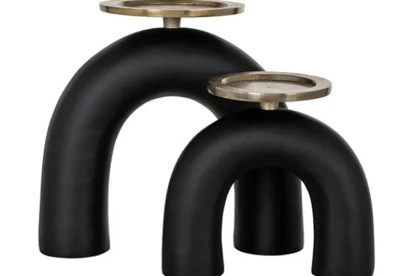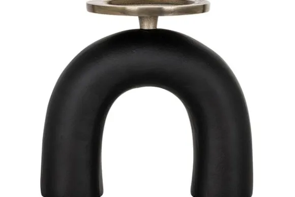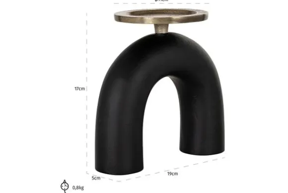 Kandelaar Livi 211449 klein van het merk Richmond Interiors is vervaardigd uit aluminium. De kandelaar heeft een mat zwarte boogvormige standaard met een messing kaarsplateau dat geschikt is voor grote waxinelichten en stompkaarsen. Combineer deze kandelaar met de grote variant Kandelaar Livi 211450 groot.