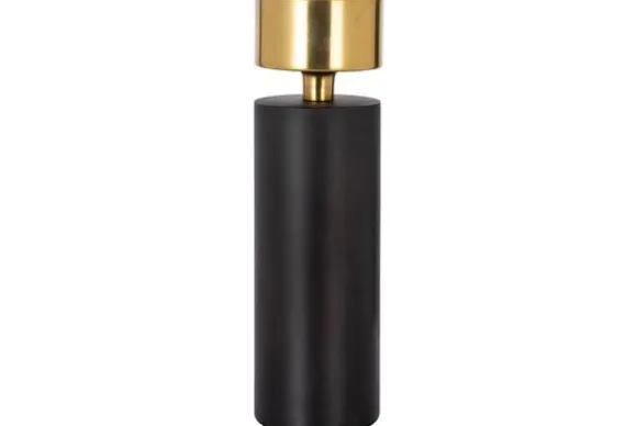 Kandelaar Tess 211751 groot van het merk Richmond Interiors is vervaardigd uit hout en heeft een messing kaarsplateau. De kandelaar geeft een chique uitstraling door de kleuren zwart en goud. De kandelaar is geschikt voor een waxinelichtje.