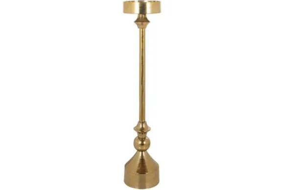 Kandelaar Presley groot 212415 van het merk Richmond Interiors is gemaakt van goudkleurig aluminium, wat hem een luxe uitstraling geeft. De kandelaar is geschikt voor grote waxinelichten en stompkaarsen.