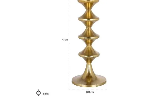 Kandelaar Avery Groot 211438 van het merk Richmond Interiors is gemaakt van aluminium. Door de gouden kleur van het aluminium is de kandelaar perfect om een gezellige en romantische sfeer te creëren. De kandelaar is ook verkrijgbaar in een kleiner formaat.