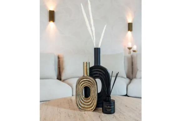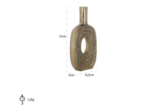 Vaas Emar klein 211199 van het merk Richmond Interiors is vervaardigd uit aluminium in de kleur brushed gold. Deze vaas heeft een uniek design en is zonder inhoud ook een decoratief item. De vaas is geschikt om op je tafel, dressoir of in de vensterbank te zetten.