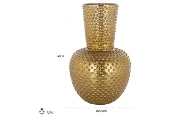 Vaas Nola 211351 van het merk Richmond Interiors is gemaakt van brass (staal in mat goud). De vaas is geschikt om bijvoorbeeld op je tafel, dressoir of in de vensterbank te zetten. Een woonkamer is niet compleet zonder leuke accessoires!