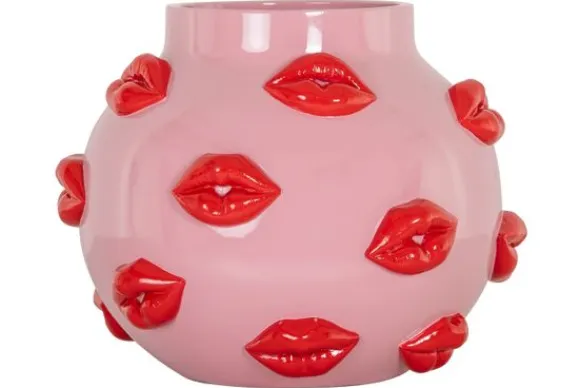 Vaas Loth 213457 van het merk Richmond Interiors is een speels en opvallend decorstuk met een knipoog naar pop-art. De roze vaas is versierd met rode lippen in reliëf en trekt direct de aandacht.