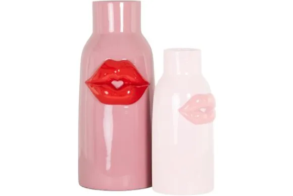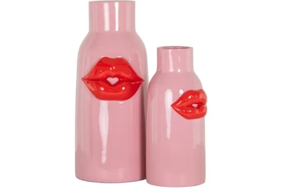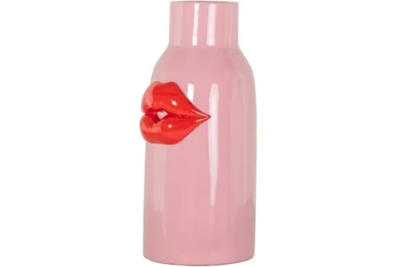 Vaas Blythe 213460 van het merk Richmond Interiors is een speels en opvallend decorstuk met een knipoog naar pop-art. De roze vaas is versierd met rode lippen in reliëf en trekt direct de aandacht.