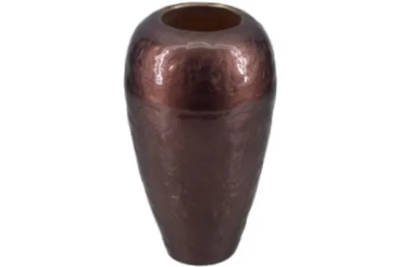 De vaas is gemaakt van hoogwaardig metaal en voorzien van een subtiele hamerslag structuur die het oppervlak een speels karakter geeft.