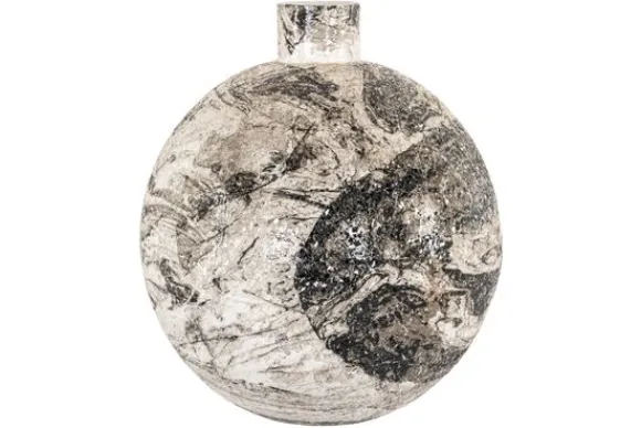De vaas heeft een levendig spel van licht en donkere tinten dat doet denken aan natuurlijke marmerstructuren. Dit geeft de vaas een speels en toch krachtig karakter.