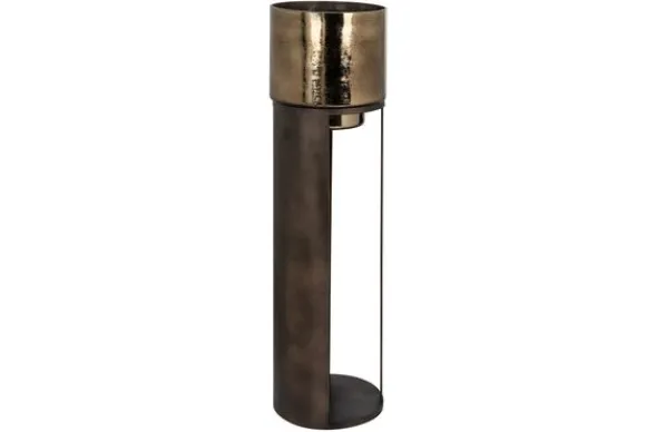Windlicht Dane 211902 klein van het merk Richmond interiors is gemaakt van ijzer. De bovenkant van het windlicht is gespoten glas waardoor het een goud-bronze finish krijgt. Het windlicht is 93 cm hoog en heeft een diameter van 26,5 cm. Combineer het windlicht met de grotere variant.
