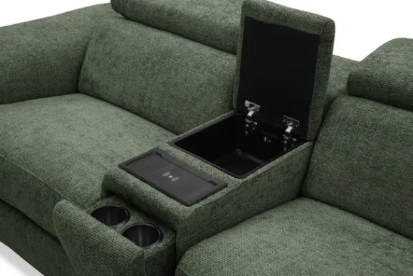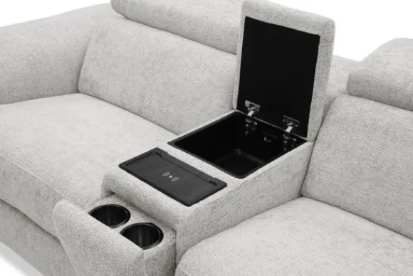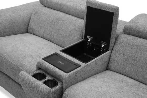 De elektrische relaxfunctie van bankstel Arizona zorgt voor pure ontspanning met één druk op de knop. De middenarmsteun is slim ontworpen met verborgen bekerhouders, een opbergvak met USB-A en USB-C koppeling, en een draadloos oplaadpunt voor je telefoon. Zo heb je alles wat je nodig hebt voor een ontspannen avond altijd binnen handbereik.
